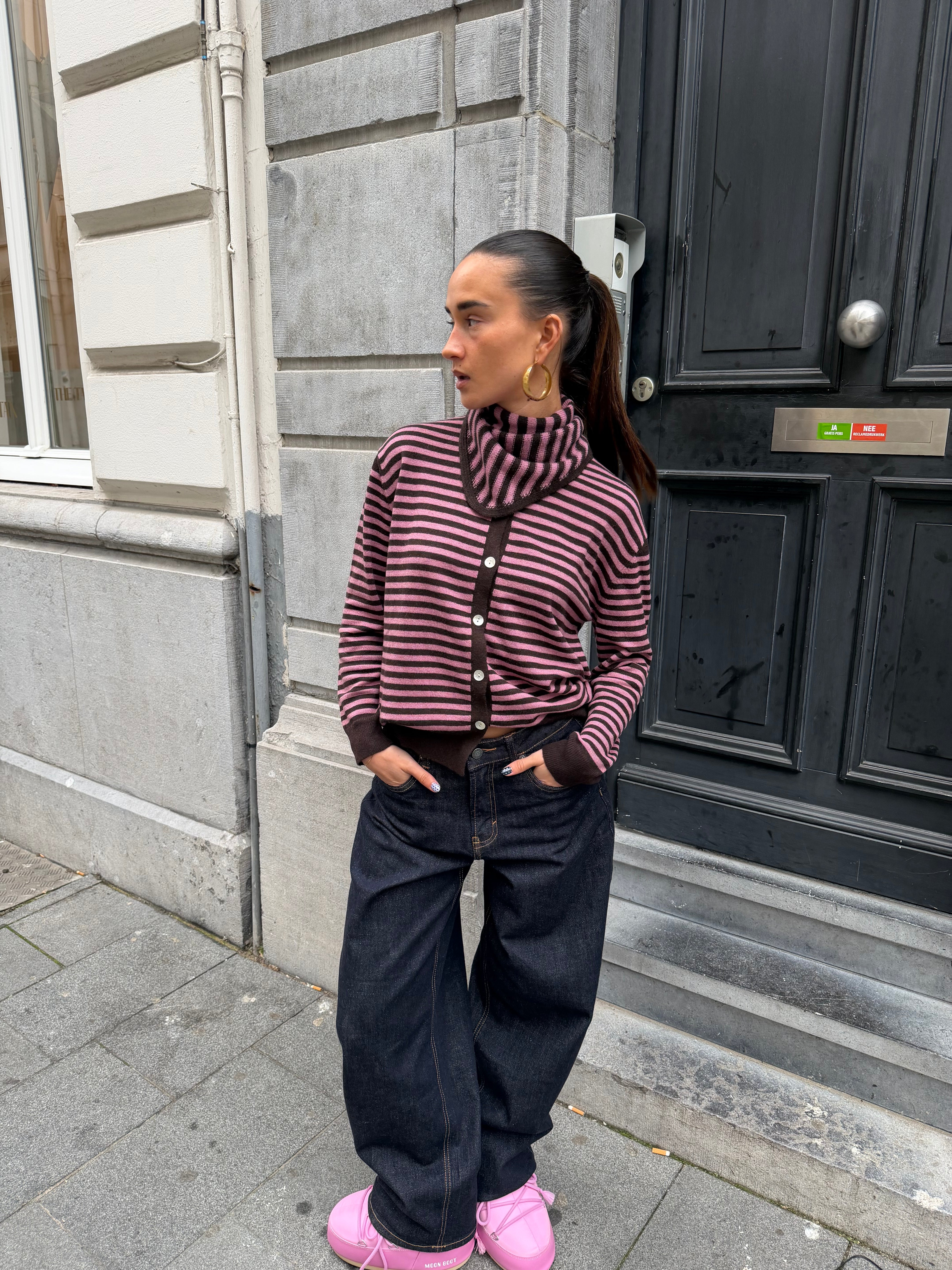 striped cardigan choco rose