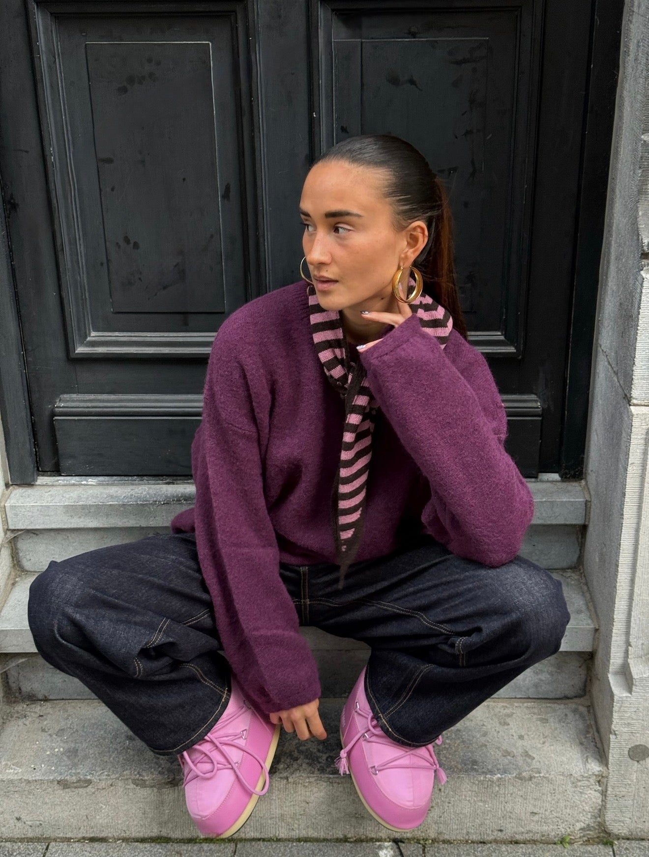 Novi striped sweater choco pink - pre order