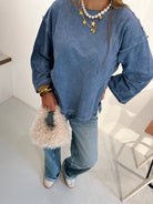De Olivia sweater is een mooie jeansblauwe die opvalt door de mooie vintage wassing van de stof. De sweater is gemaakt in Italië van 100 % katoen. De soepele fit & split aan de zijkant geven een leuk detail.