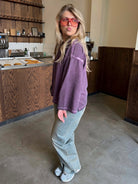 De Olivia sweater is een mooie sweater in een paarse tint die opvalt door de mooie vintage wassing van de stof. De soepele fit & split aan de zijkant geven een leuk detail.