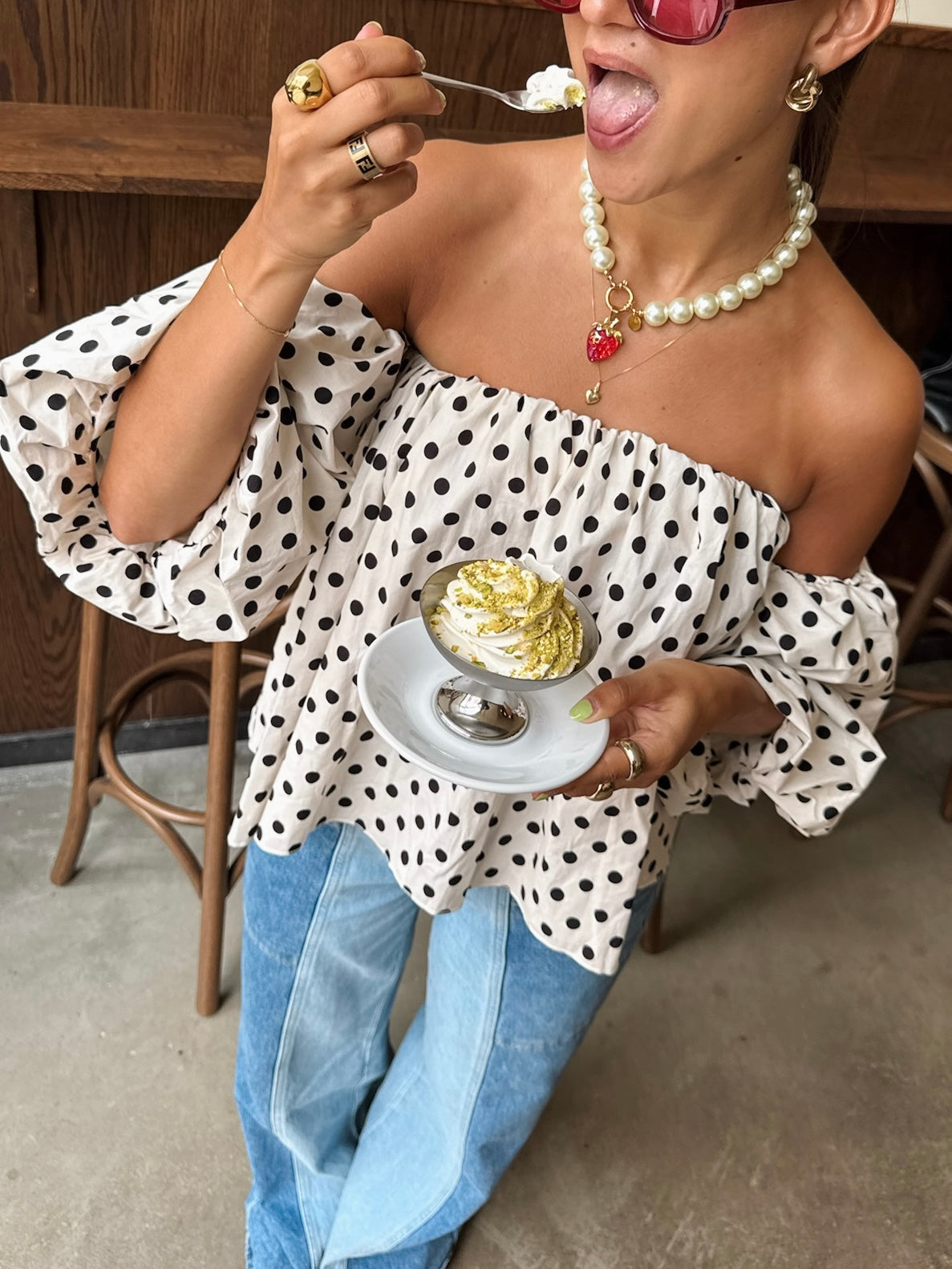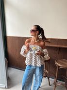 Dots off shoulder top wit - pre order
