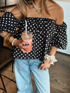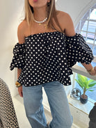 Dots off shoulder top zwart