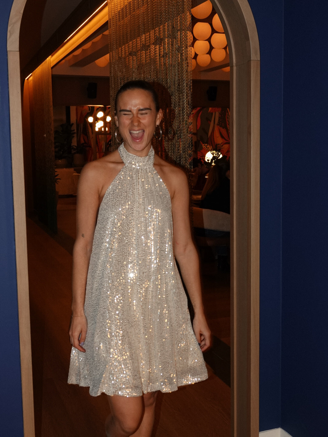 Door de lengte komt de Fanny Glitter Dress het mooist tot zijn recht bij een lengte vanaf 1,68 meter.