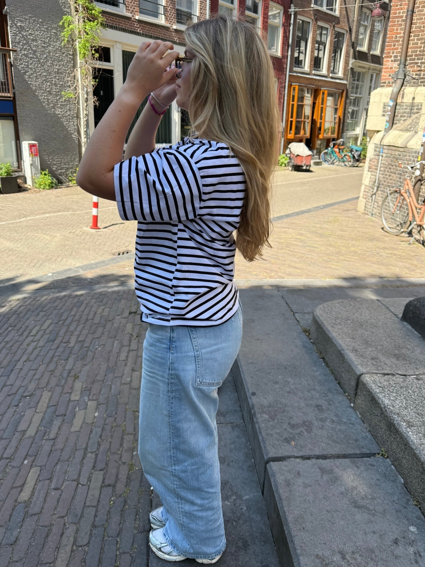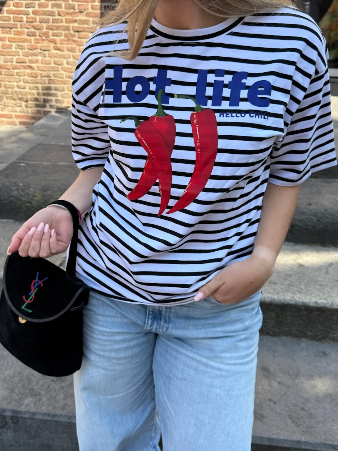 Het gestreepte Blair tshirt met de tekst "hot life" style je met je favoriete witte broek of denim of jeans!