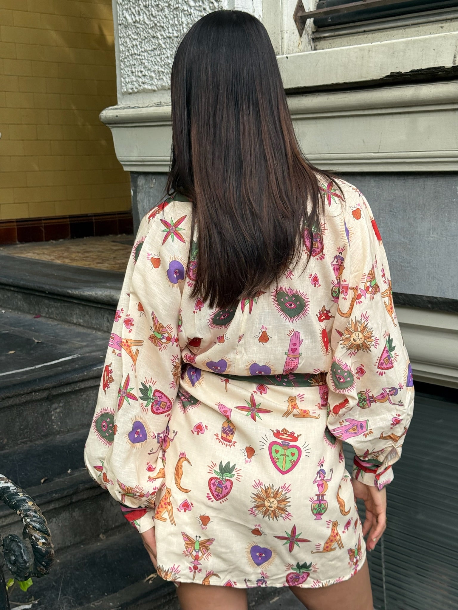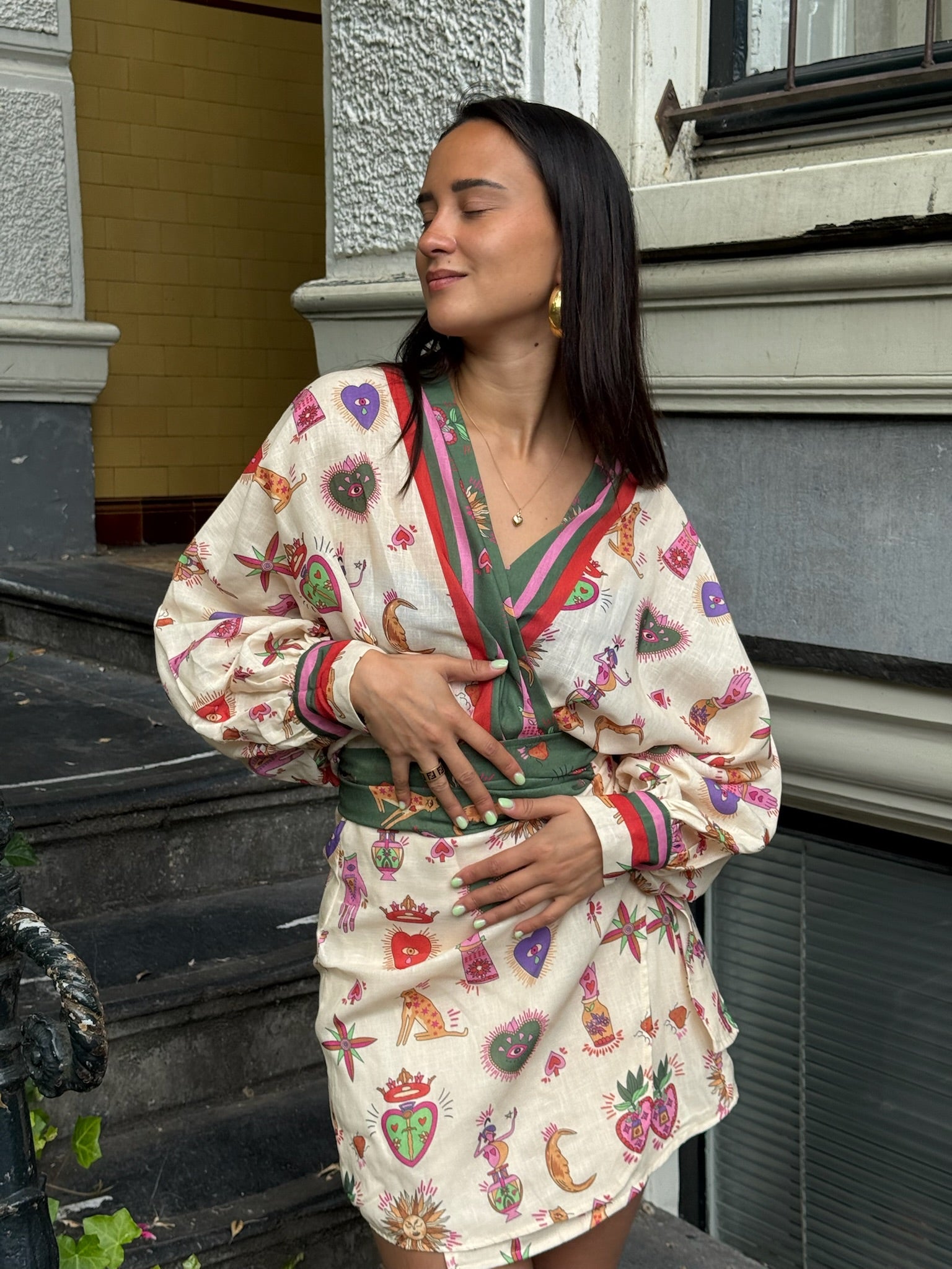 Omg! Onze nieuwe coco jurk is een echte eyecatcher door haar opvallende print. Je taille wordt mooi geaccentueerd door het model van de jurk.