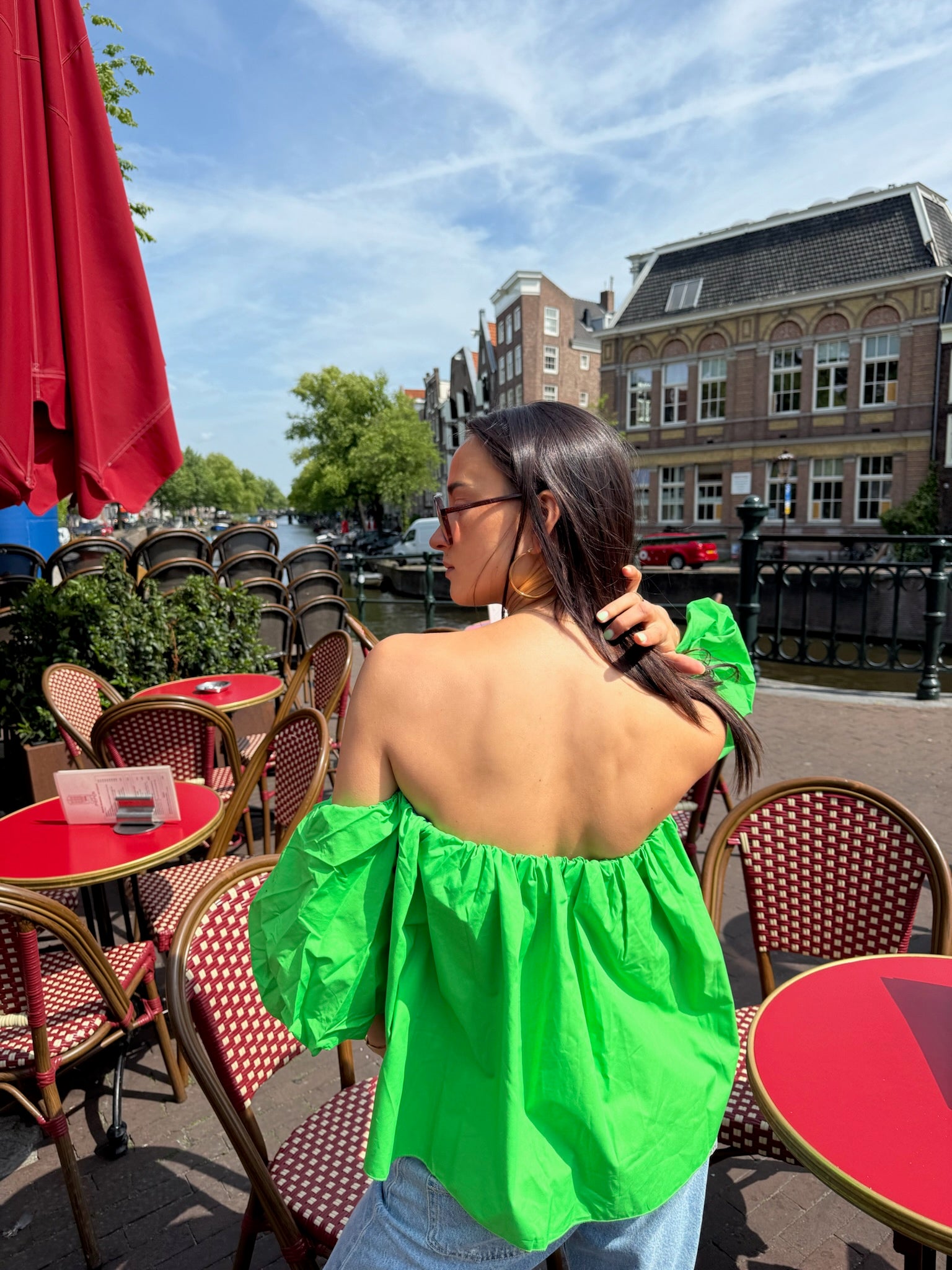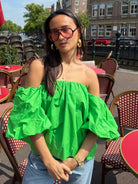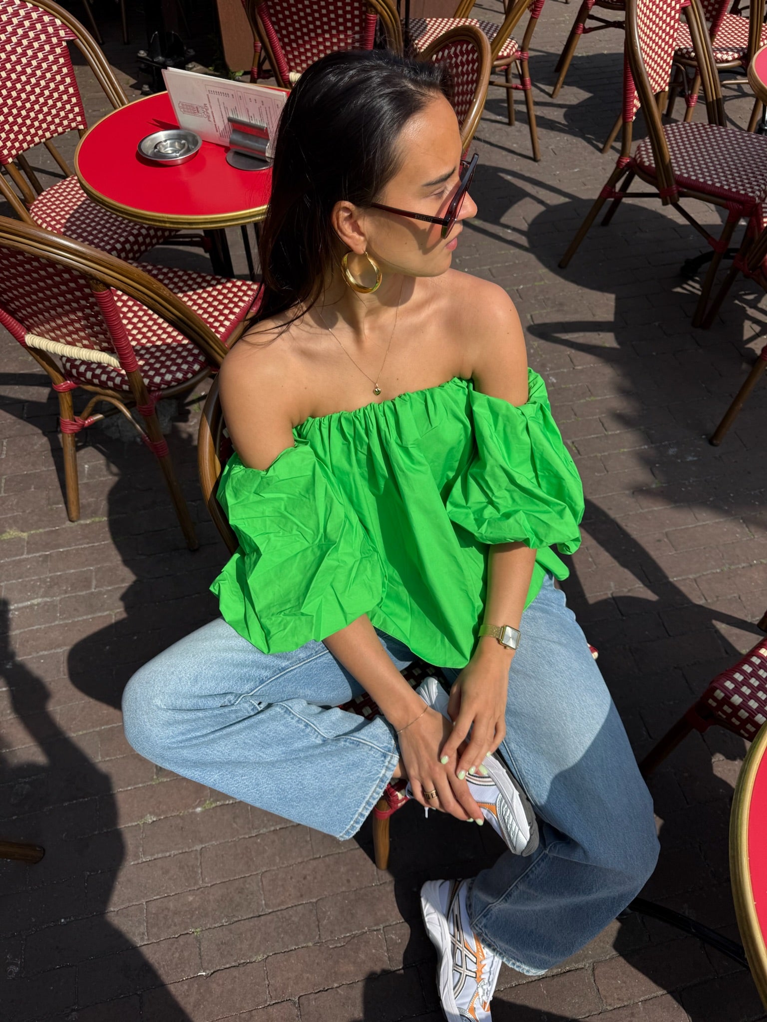 Hoe gaaf is de jaimie top in deze opvallende felgroene kleur?! Een echte eyecatcher! Gemaakt in Italië.