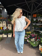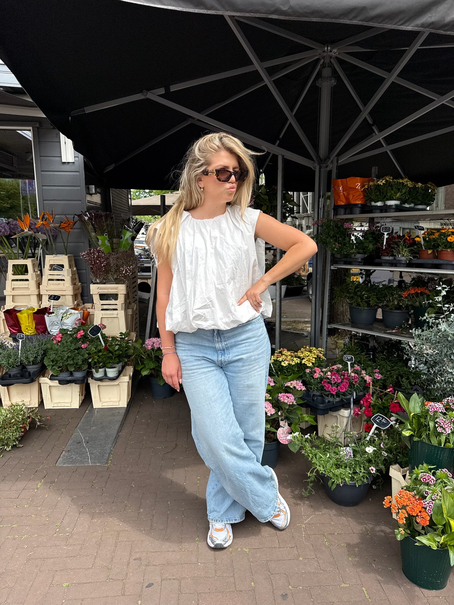 De Lot top valt op door het leuke strijkdetail aan de achterkant. De top heeft een ballon-vormige fit. Style de top met je favoriete jeans of rokje! De top heeft een gebroken witte kleur.