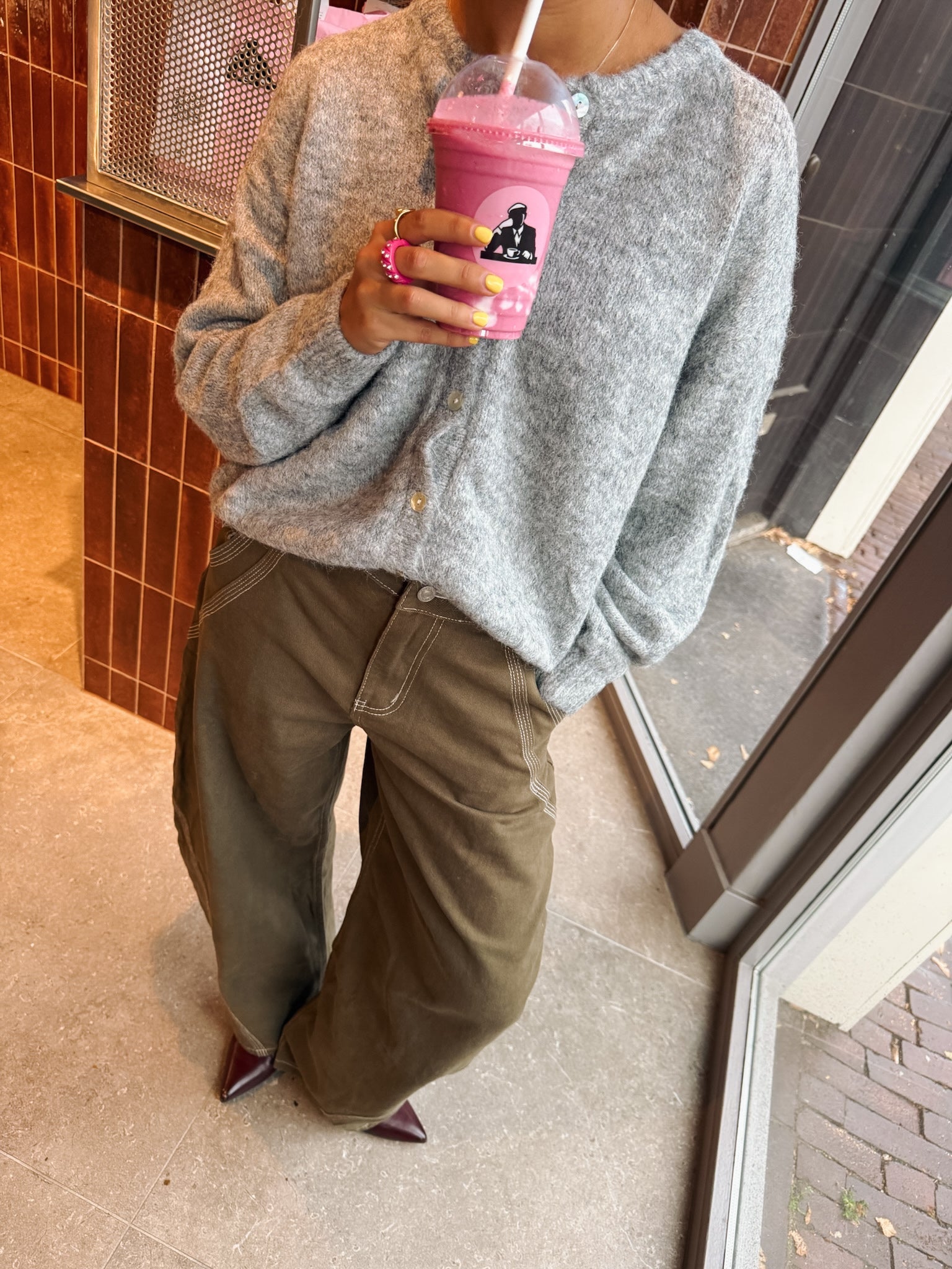De barrel jeans is een cool model met een eigentijdse pasvorm: wijd en luchtig, met die kenmerkende ballonvorm. De army groene kleur krijgt extra karakter door de witte stiksels, die stijlvol afsteken en de broek een stoere touch geven.
