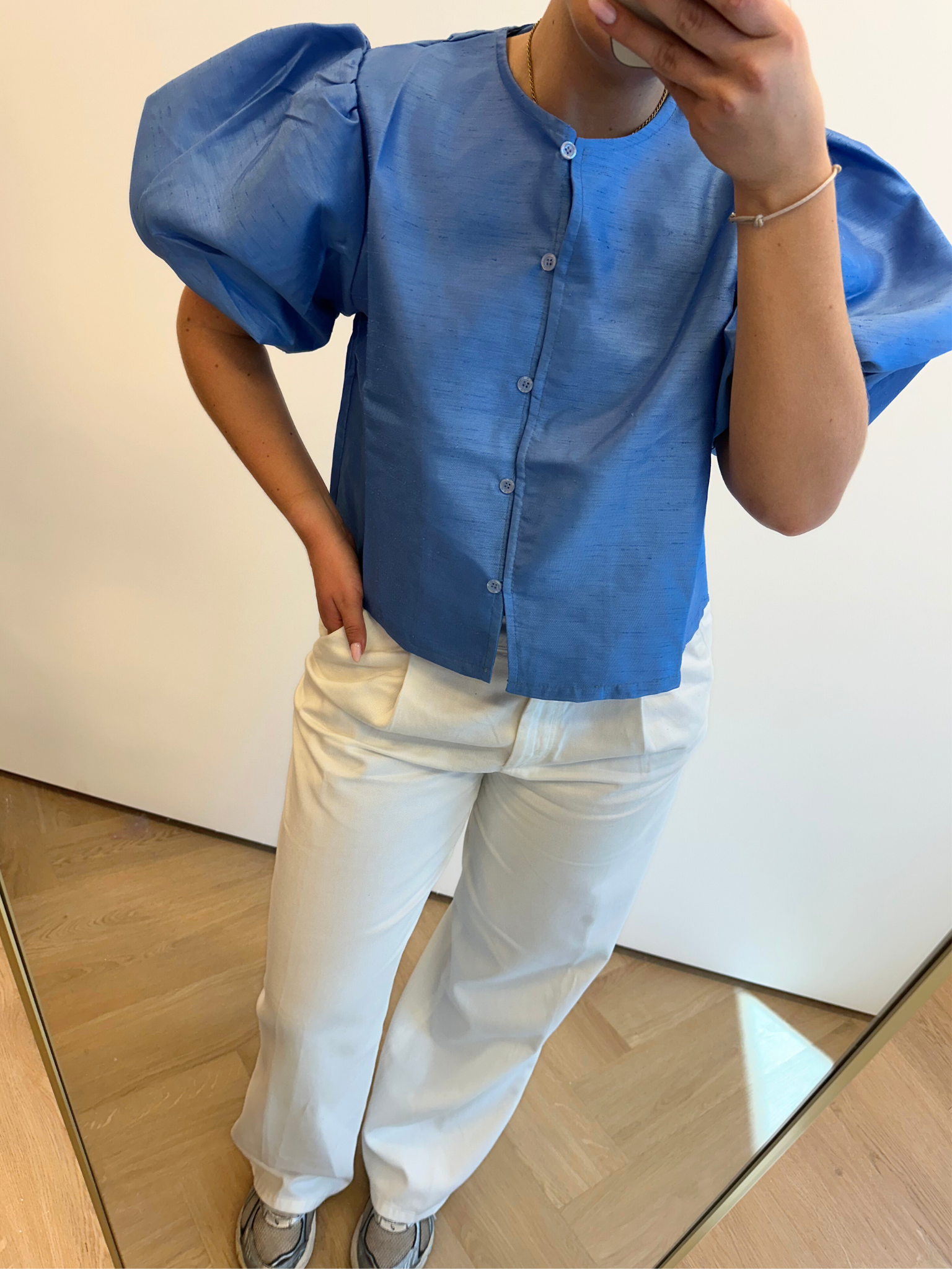 Meet lovely’s eyecatcher: de Dolly Blouse! Door de speelse pofmouwen in combinatie met het mooie glanzende stofje is de Dolly Blouse dé perfecte blouse die je zowel casual kan dragen als chic!