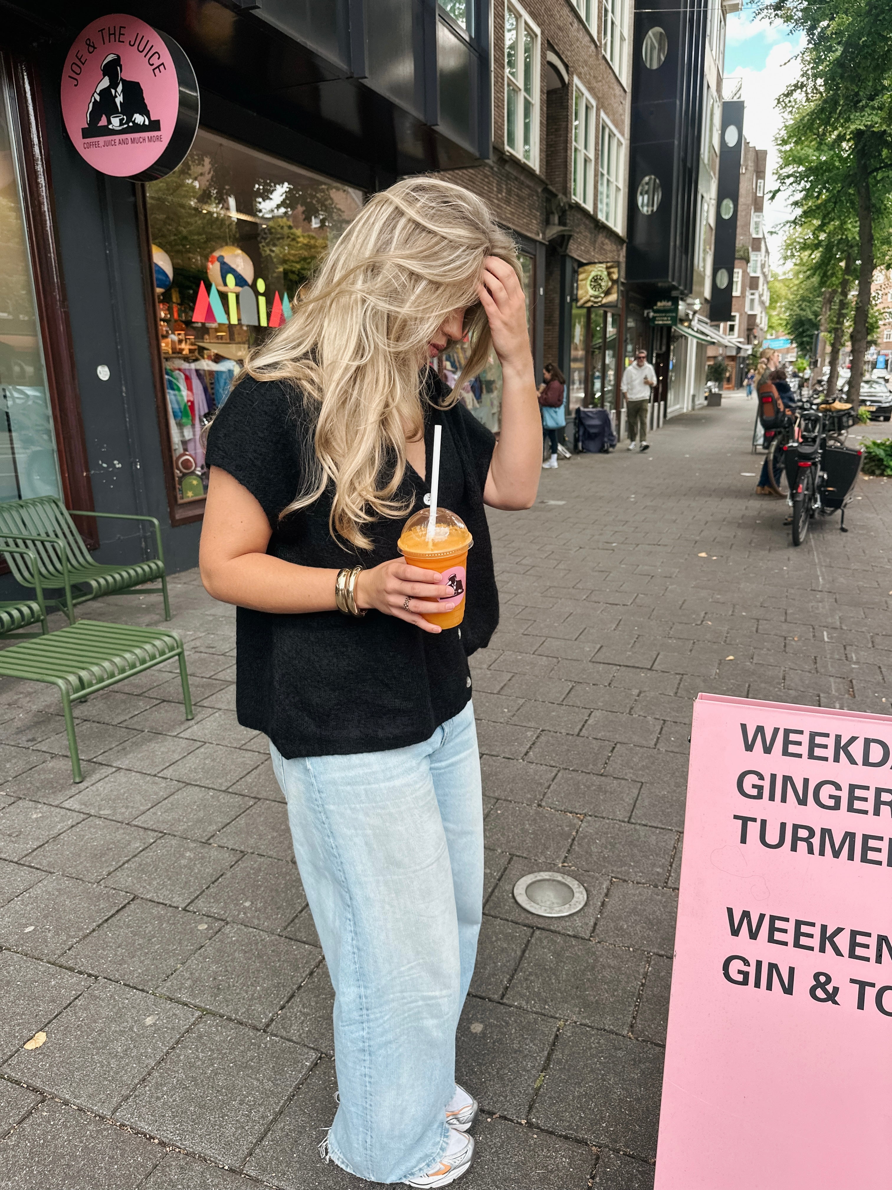 De Stella gilet heeft een oversized, loose fit. Combineer de gilet met een jeans voor een effortlessly chic look. De gilet wordt gemaakt in Italië van luxe materialen zoals mohair waardoor de stof zacht aanvoelt en niet kriebelt.