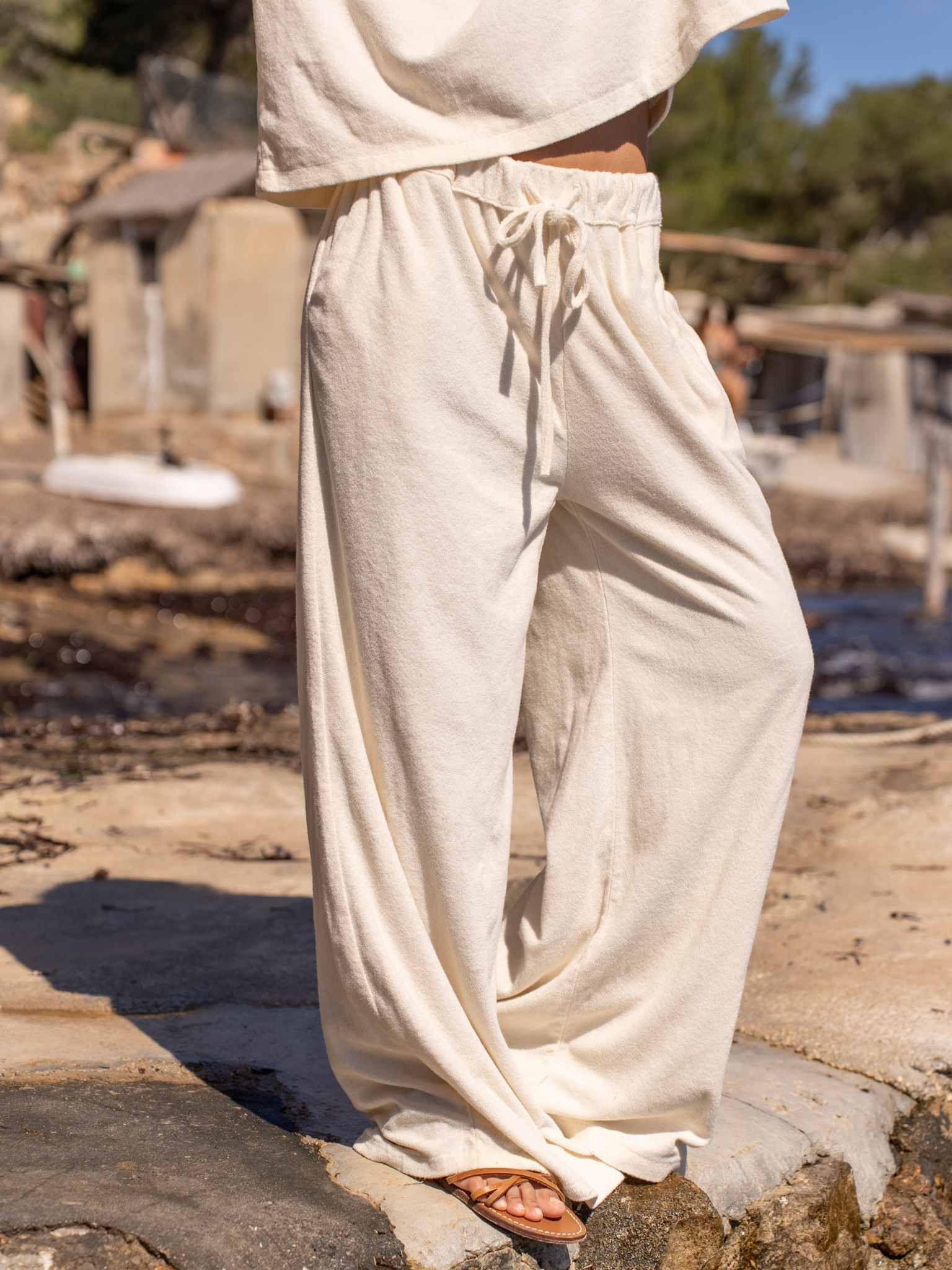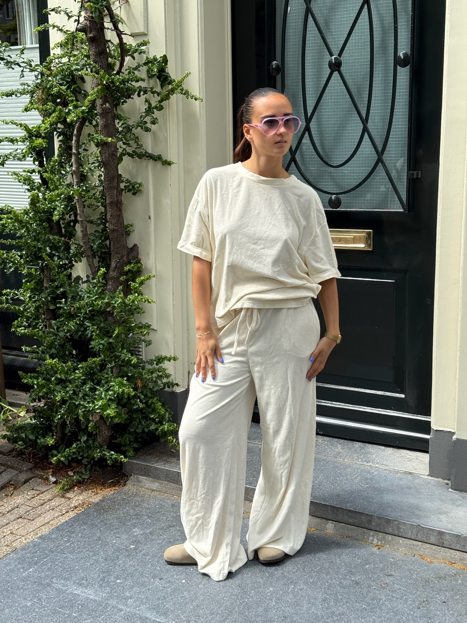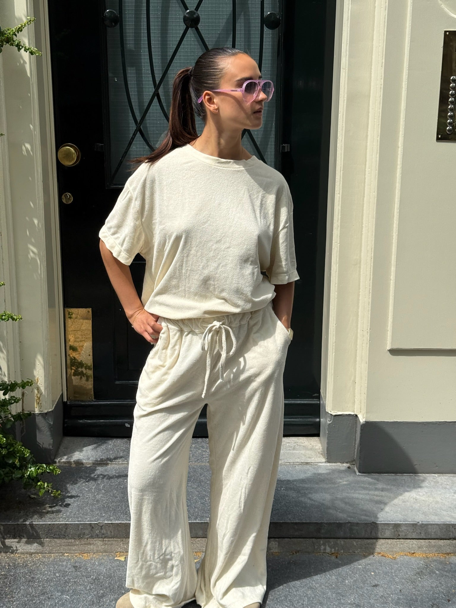 De Molly broek is de ideale comfortable broek voor deze zomer. De broek is gemaakt van badstof waardoor deze ultra comfortabel zit. De tailleband bevat elastiek waardoor de broek mooi aansluit in je taille. Combineer de broek met de Molly tee voor een stijlvolle look.