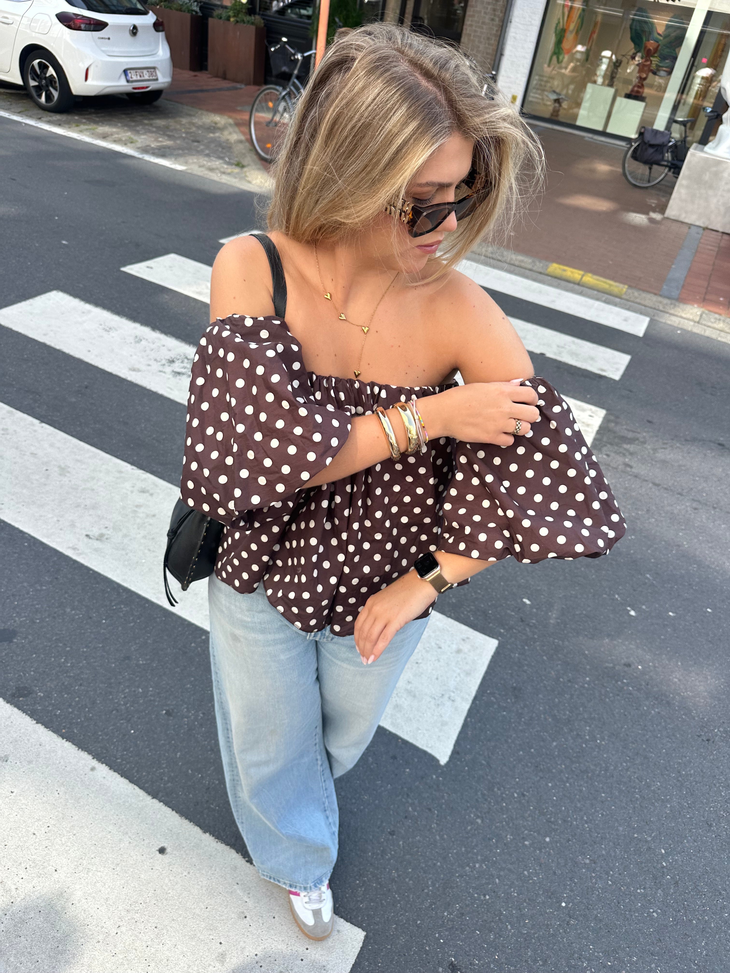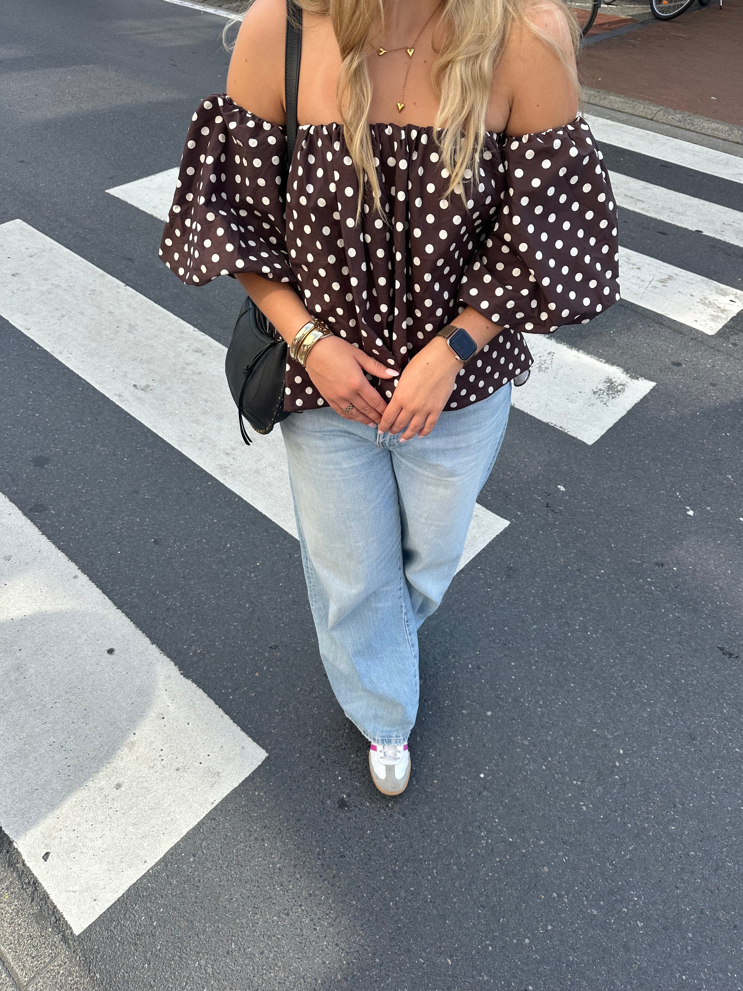 Dots off shoulder top choco