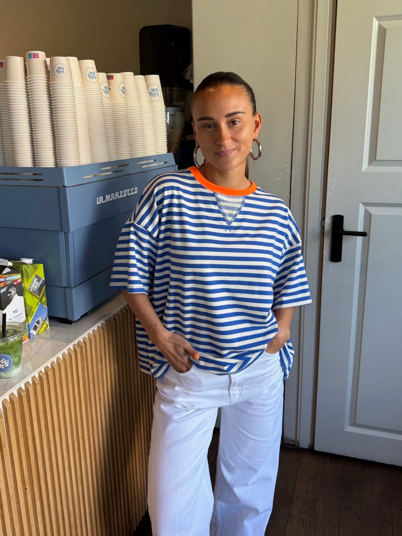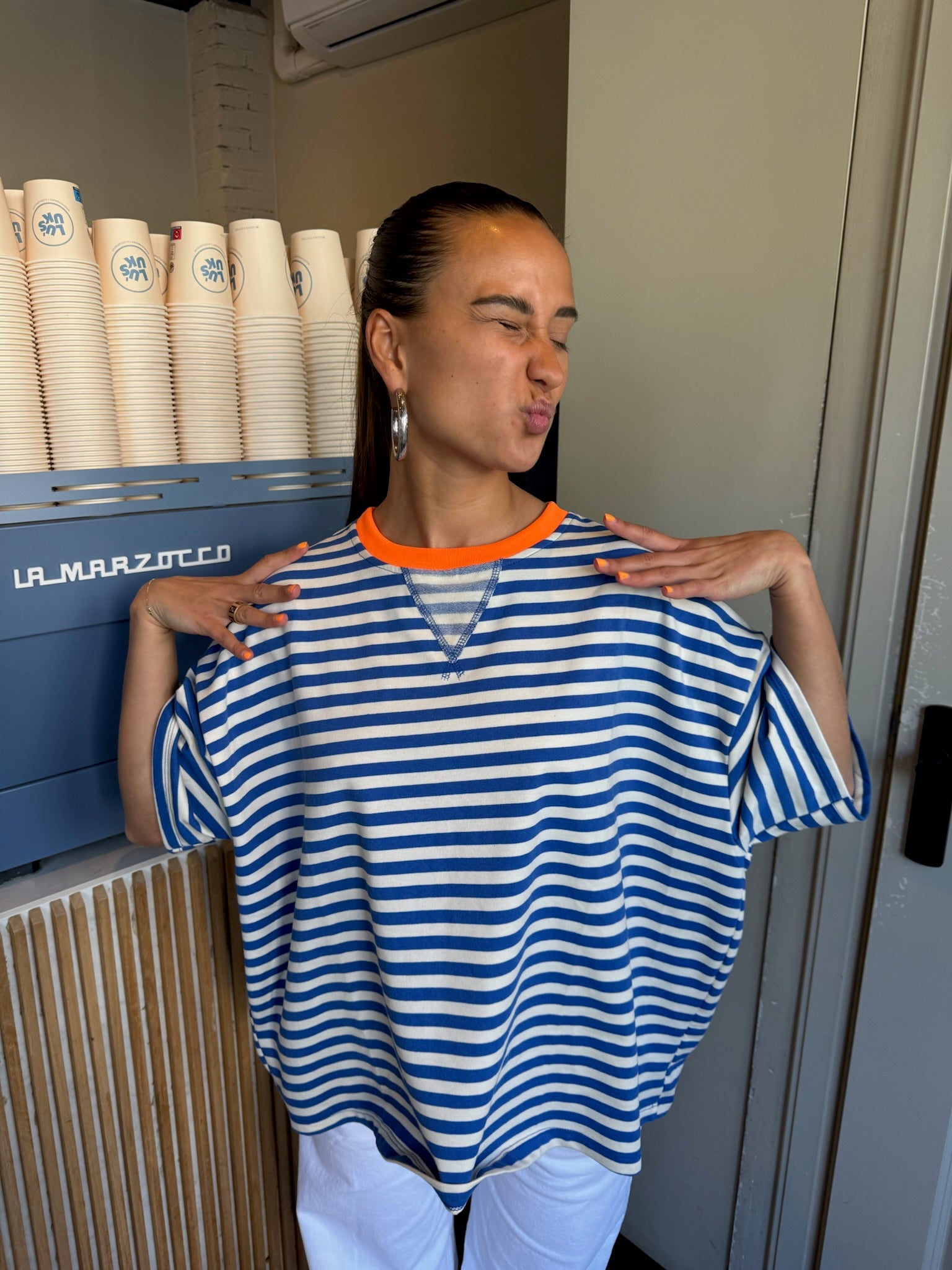 Novi striped t-shirt blauw/oranje