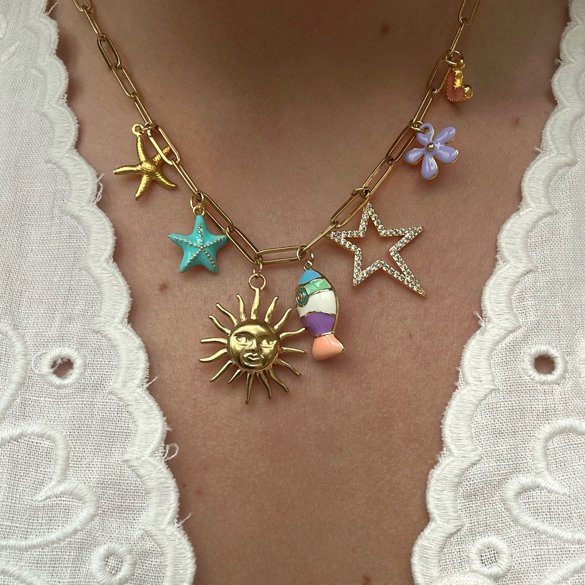 De prachtige Aloha necklace bevat allemaal unieke zomerse bedels die elke outfit een kleurrijke en unieke touch geven!