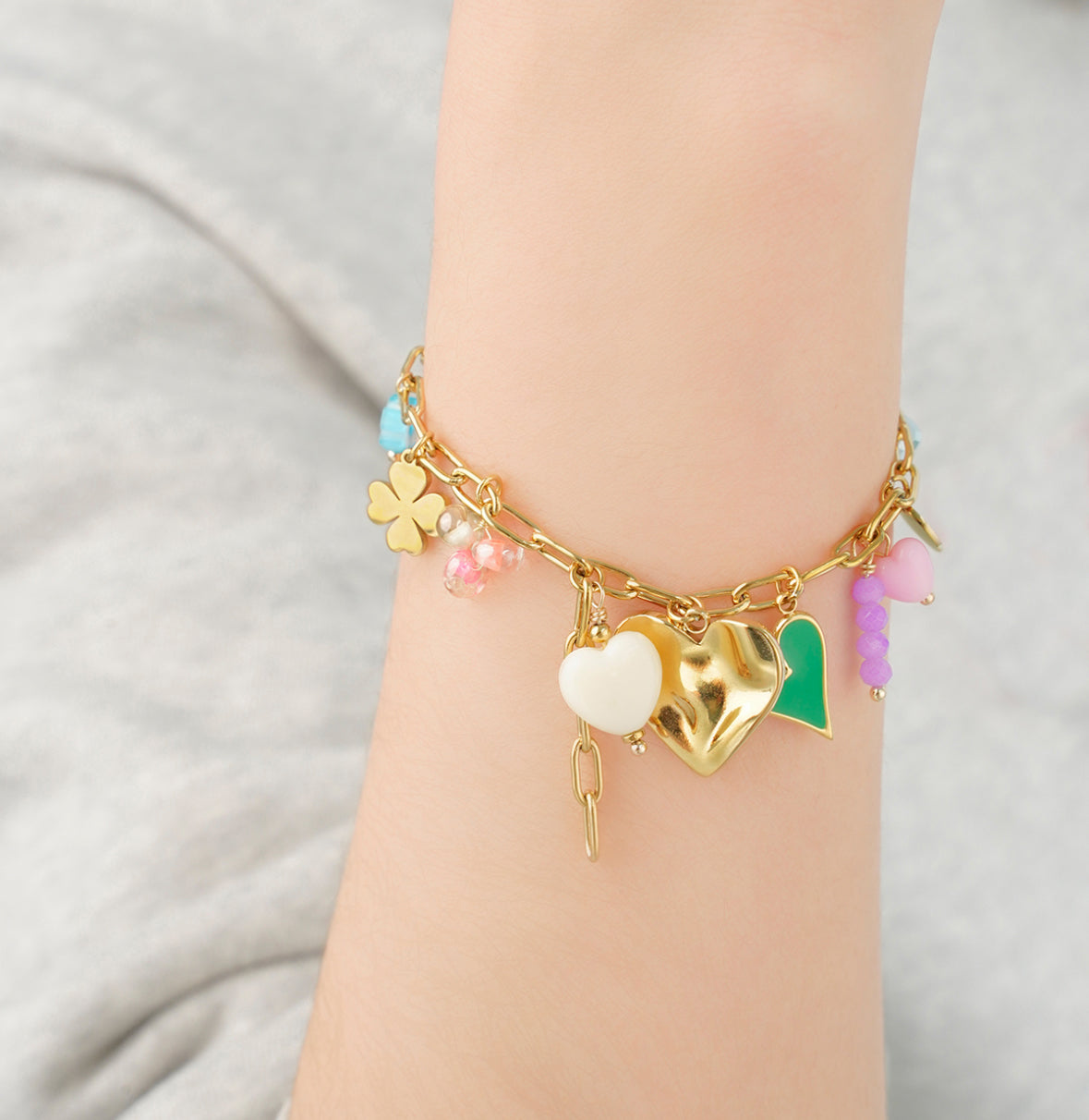 Prachtige roestvrijstalen bedelarmband met 10 unieke bedels!