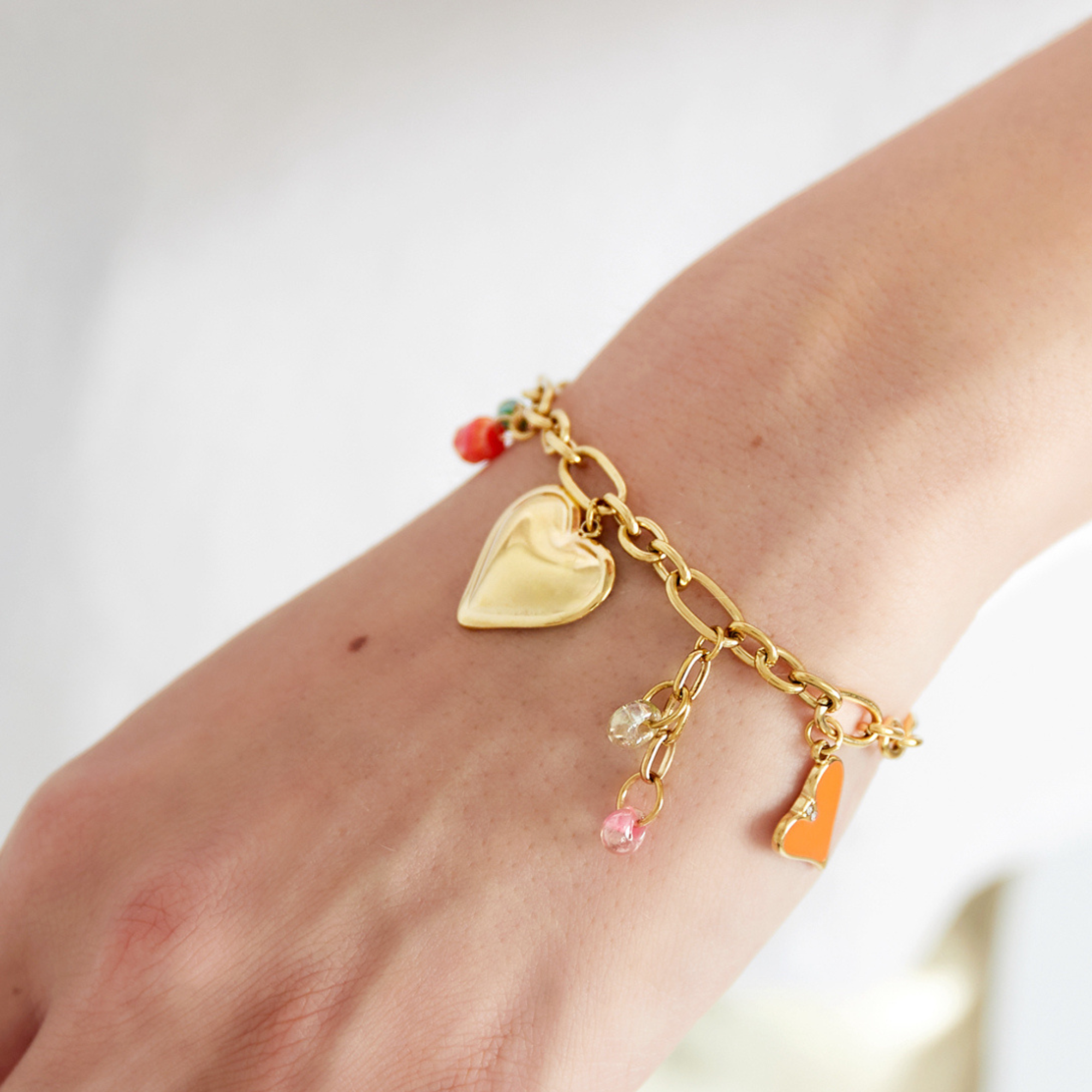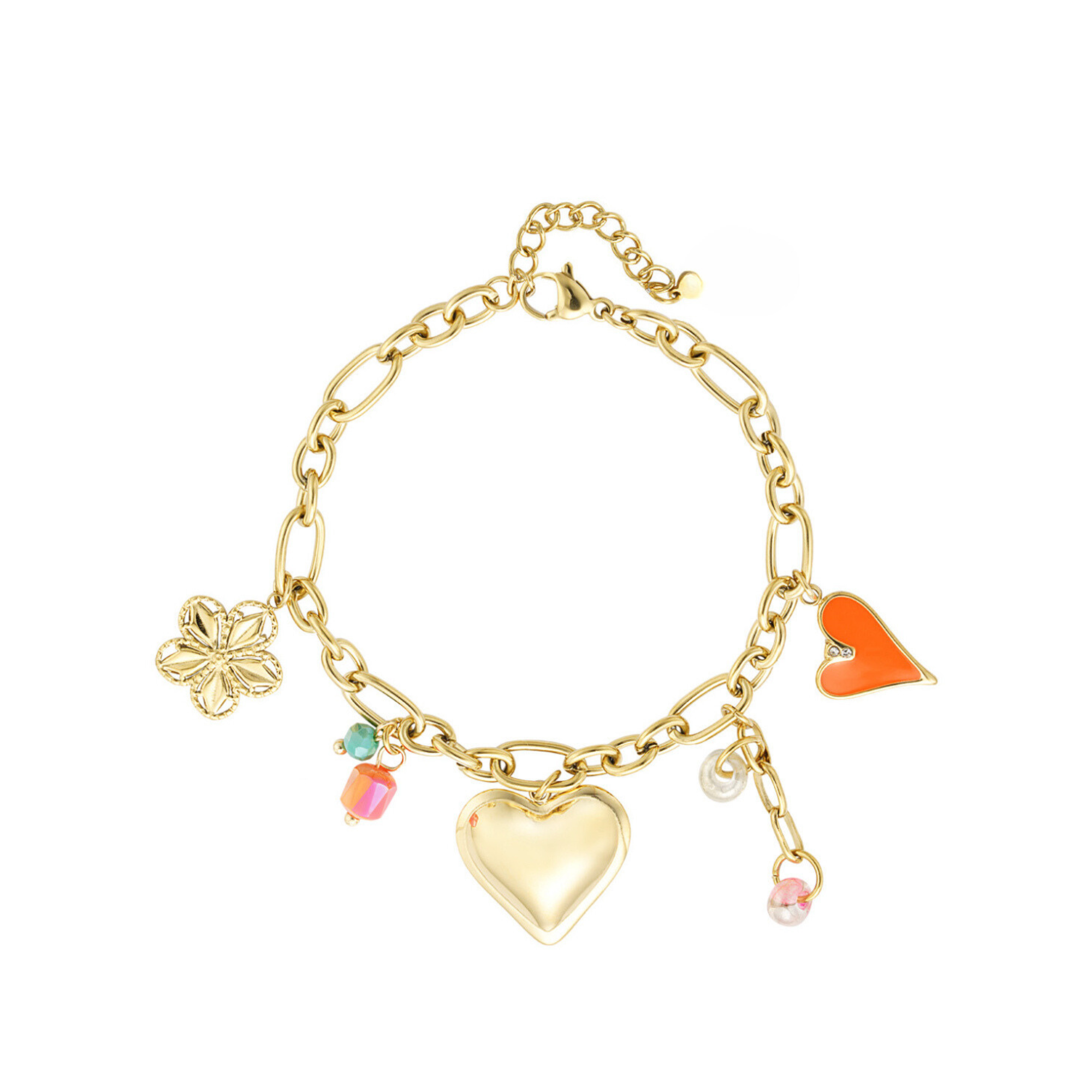 Prachtige bedelarmband met een subtiele ronde schakel en 5 unieke bedels!