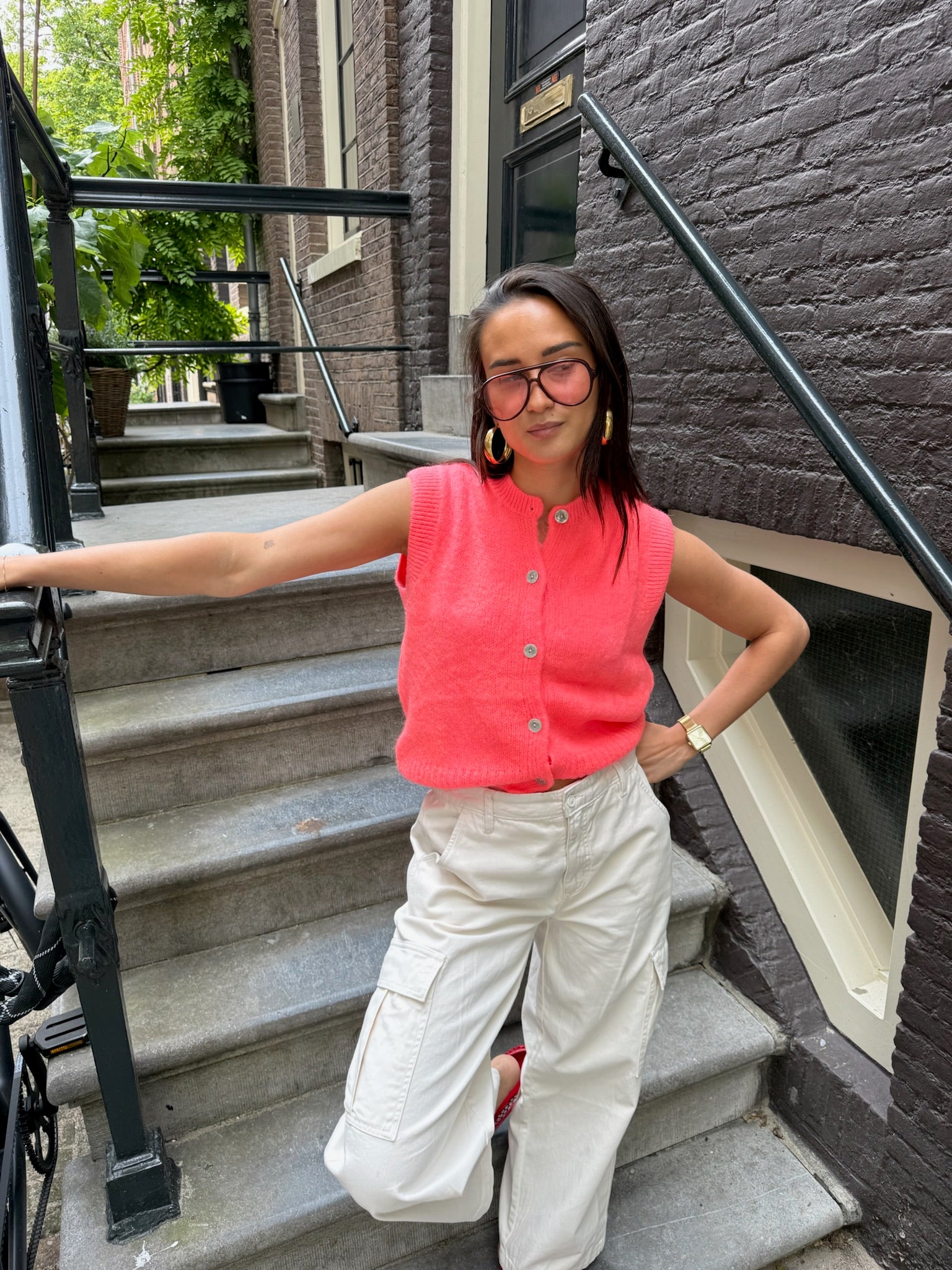 Dit luxe gilet heeft een prachtige koraal kleur! Gemaakt van fijn en zacht materiaal dat heerlijk zit. De elegante knoopjes en de fijne pasvorm zorgen voor een stijlvolle look. De Bobbie gilet heeft een normale pasvorm. Draag hem los of style hem met een blouse of top!