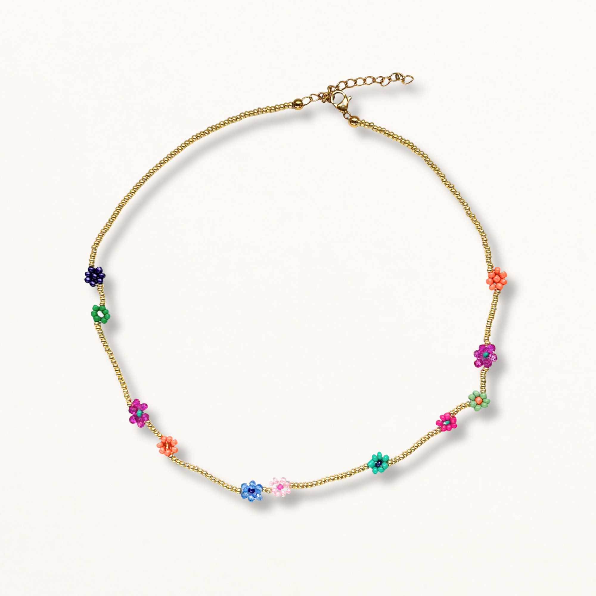 De Flore necklace is handgemaakt in ons atelier van prachtige handgemaakte glaskralen bloemen. Gecombineerd met gouden details. De fijne handgemaakte details maken de Flore necklace een absolute favoriet.