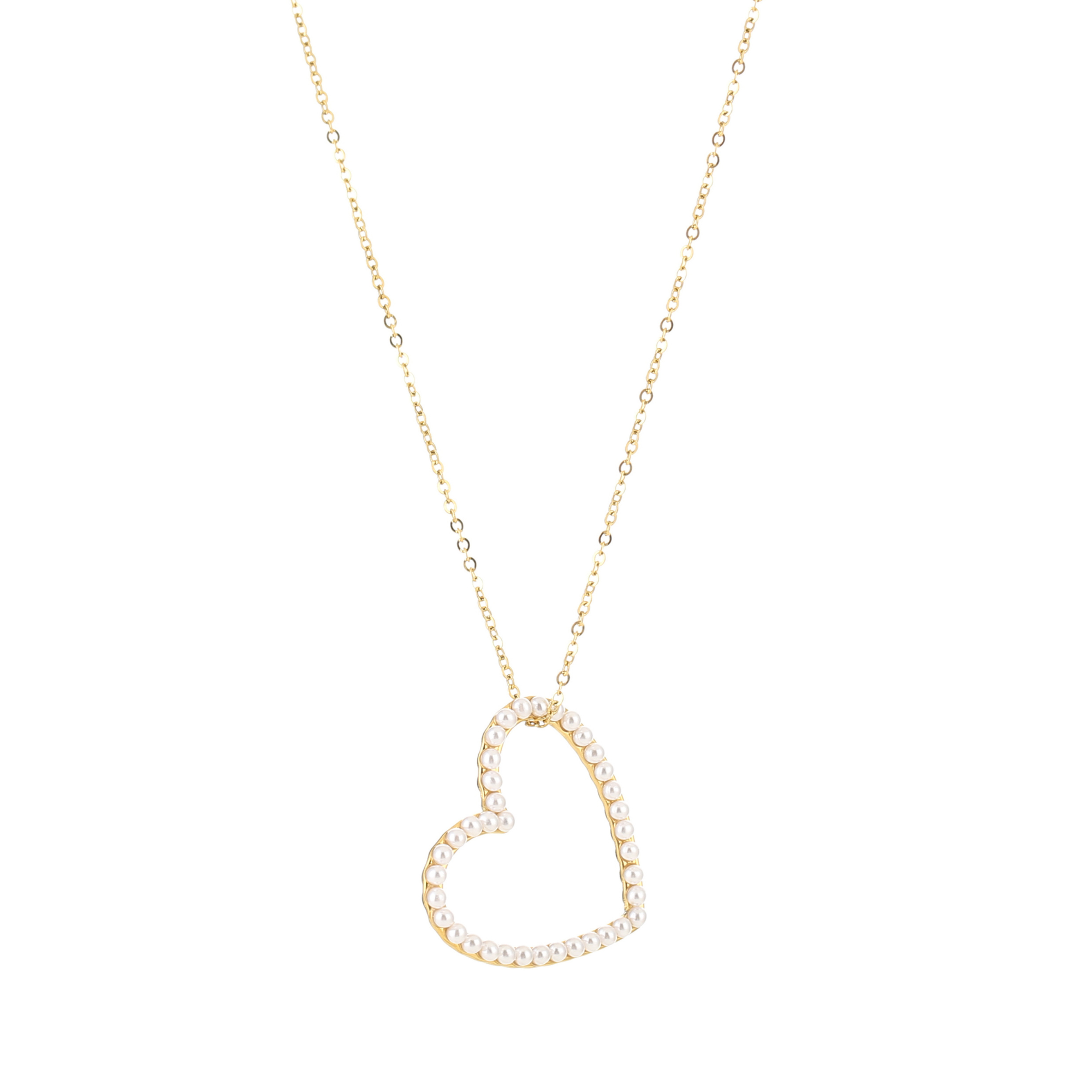 Dit schattige gouden kettinkje heeft een groot hart als hanger, versierd met fijne pareltjes. Het is de perfecte mix van speels en stijlvol, en maakt elke look net wat specialer. Ideaal om elke dag te dragen!