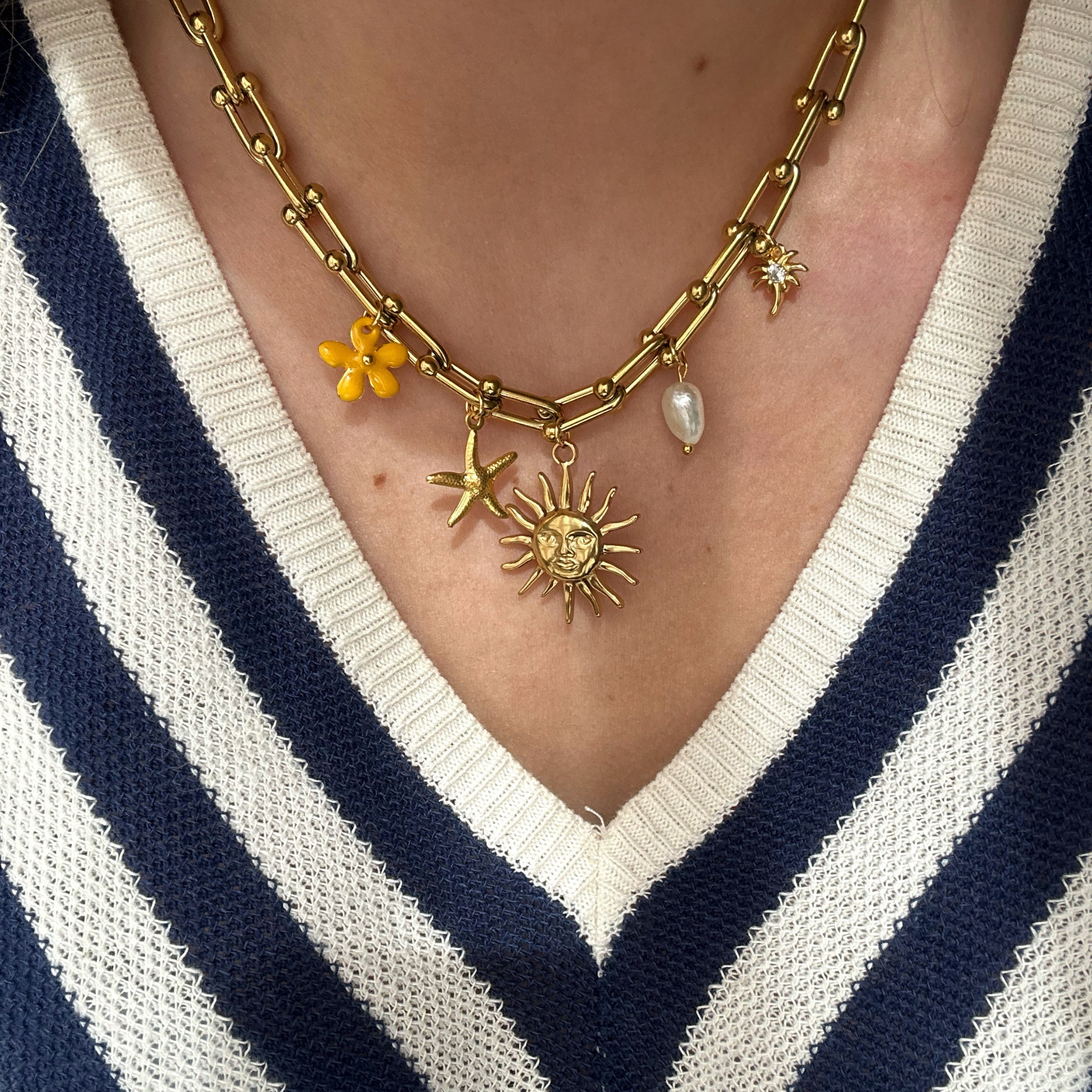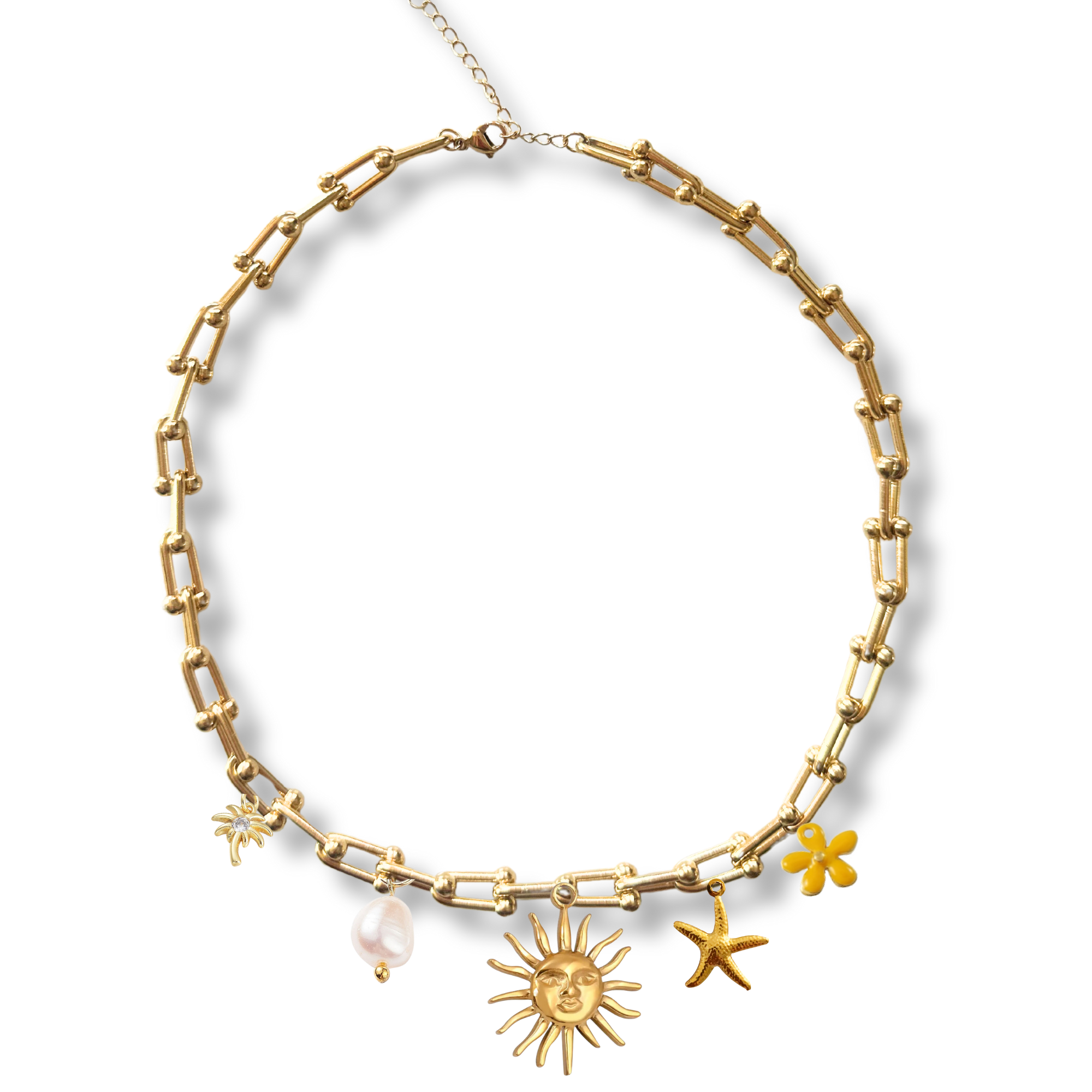 De sunset lover ketting bevat gouden bedels met mooie tropische details!