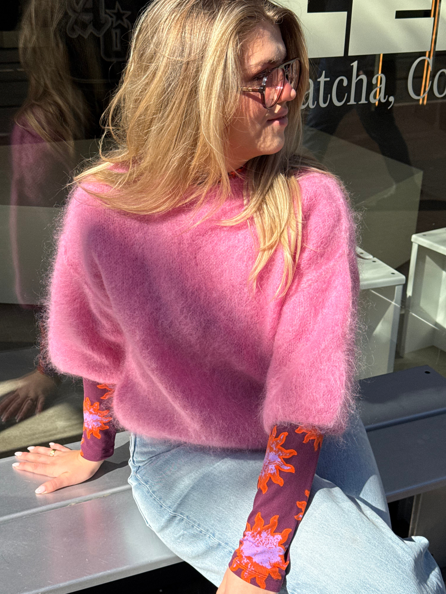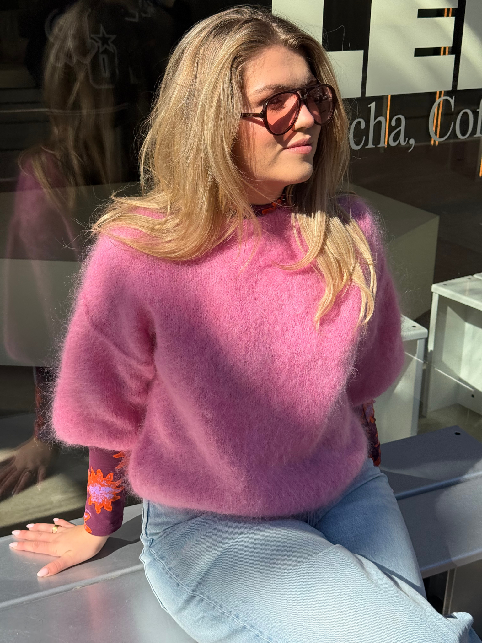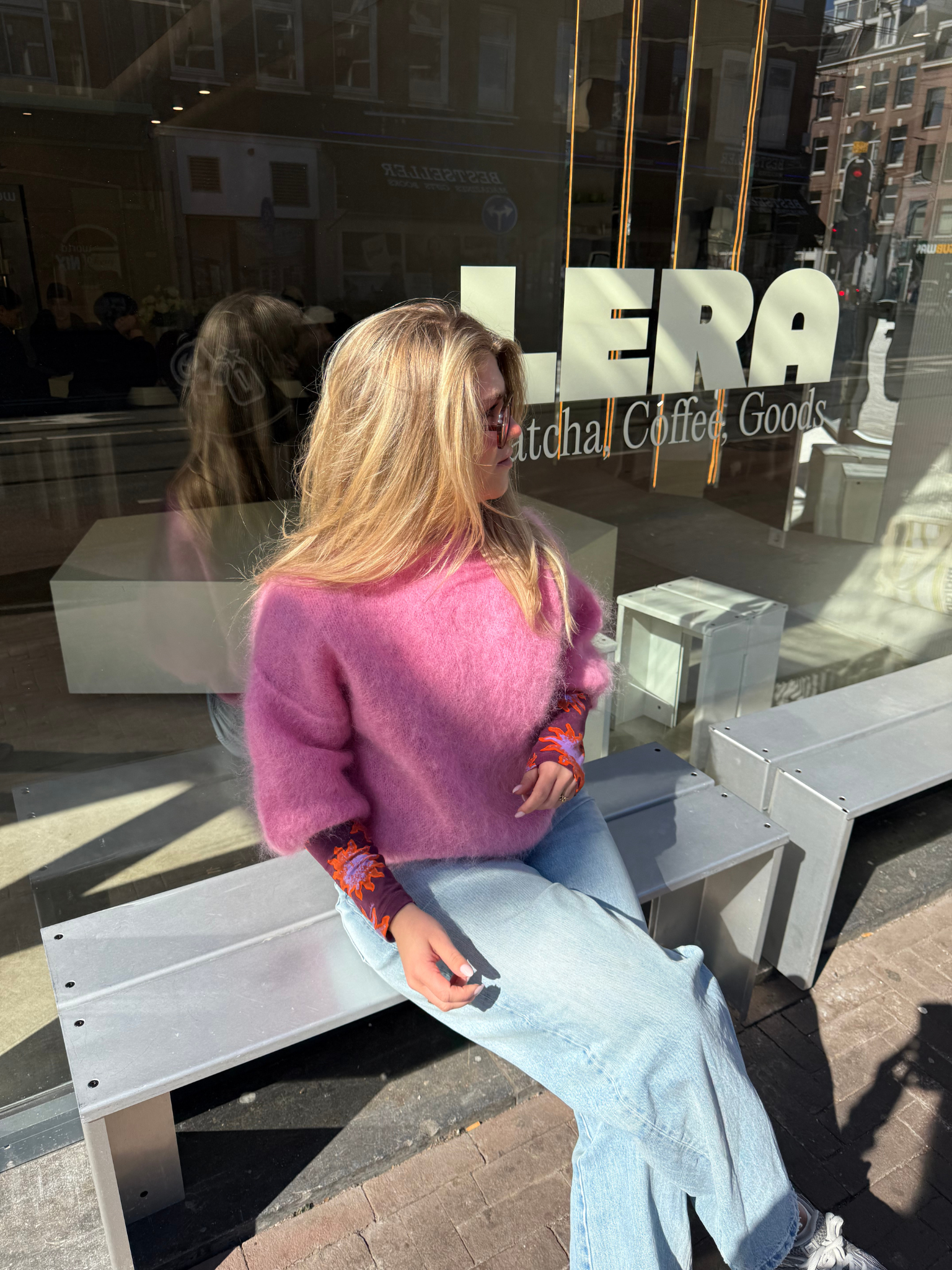 De Fluffy top is een echte keypiece voor in je garderobe. Deze luxe top gemaakt wordt gemaakt in Italië en bestaat voor maar liefst 80 % uit mohair. De top kriebelt niet.