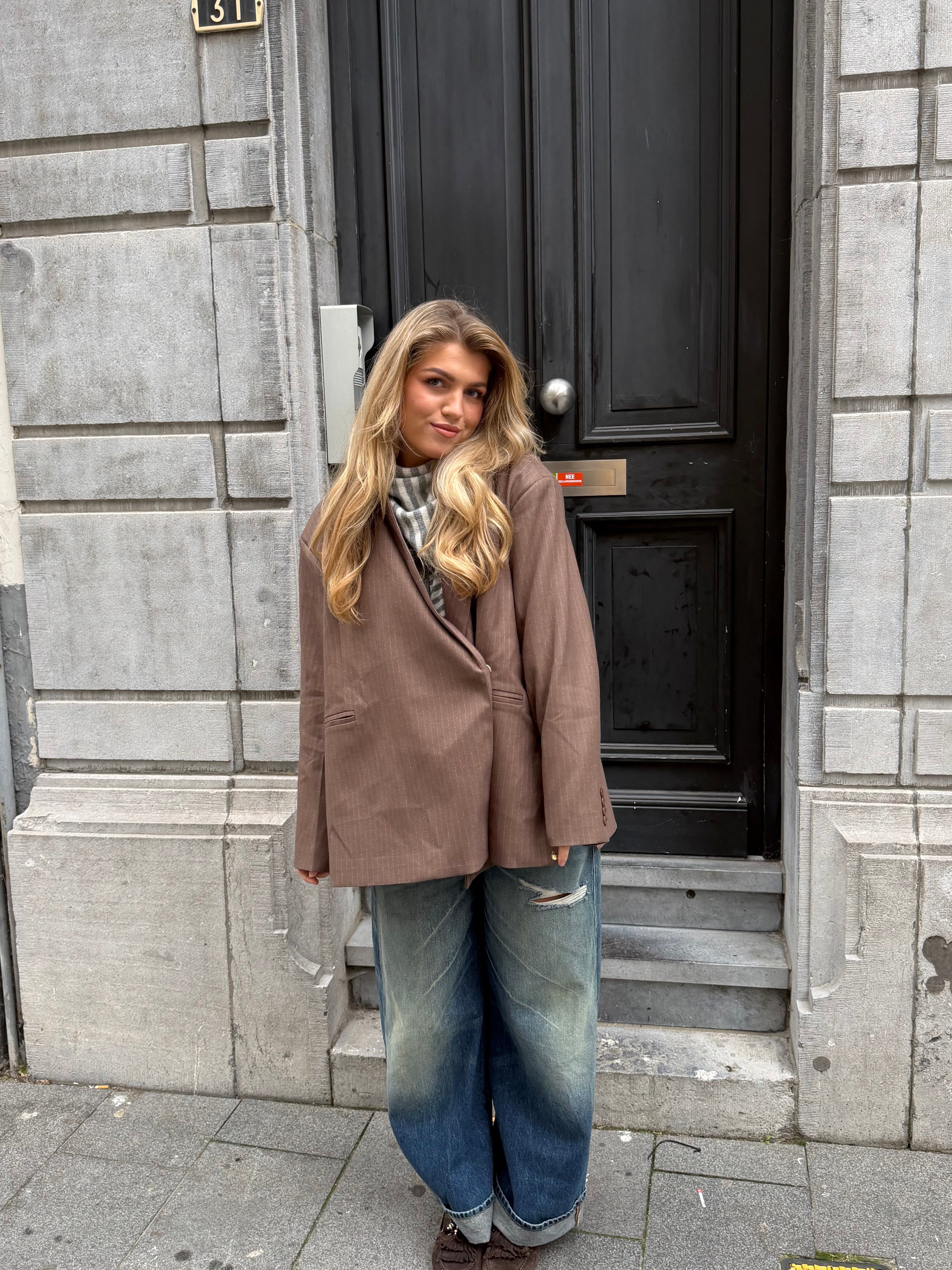 Isabelle striped blazer brown