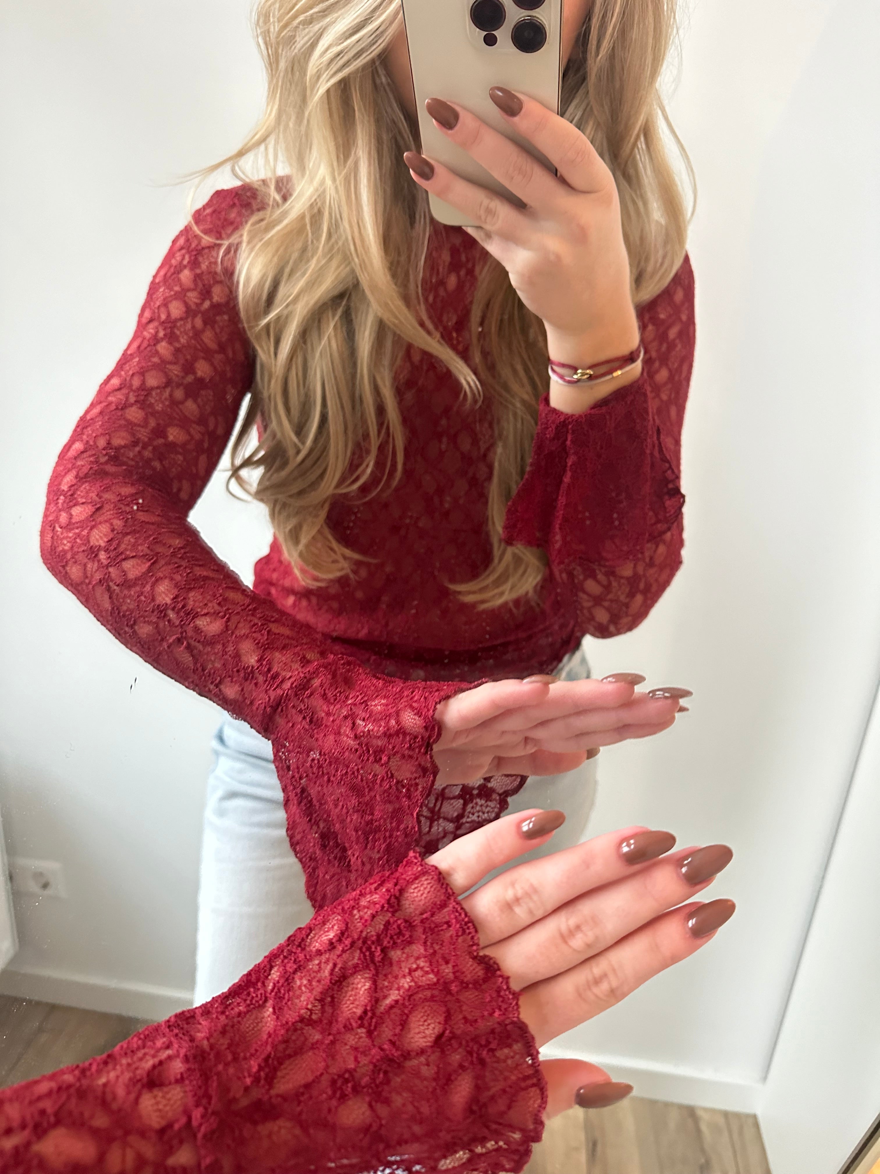 Lovely’s kanten top bordeauxrood
